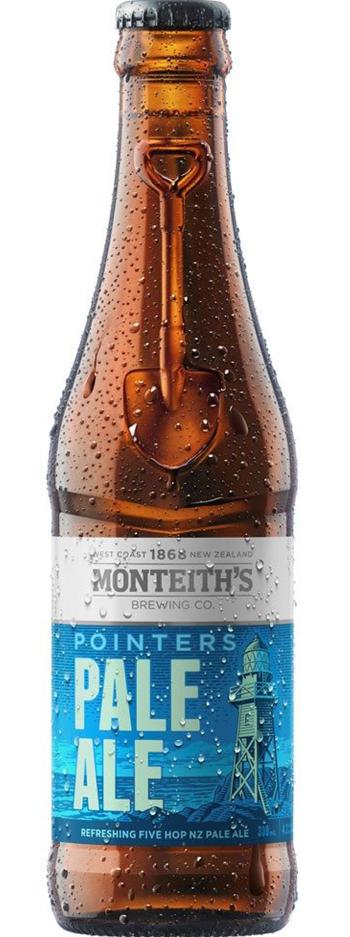 Monteith's Pale Ale combines the intensity of North West American hops with the liveliness of New Zealand hops. Filtered to give it a clear straw appearance, this refreshing, hop-driven ale begins with a zesty citrus aroma, complimented by a full malt flavour and crisp finish.