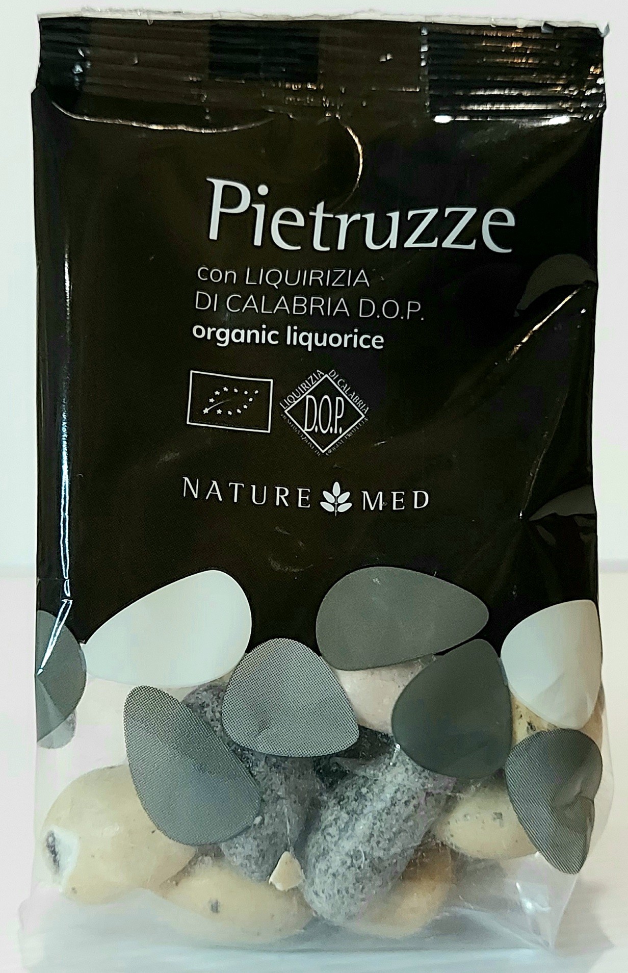 The liquorice stones are sugared almonds with a soft heart of Licorice of Calabria PDO from organic farming, lightly flavored and covered with a very thin layer of sugar.