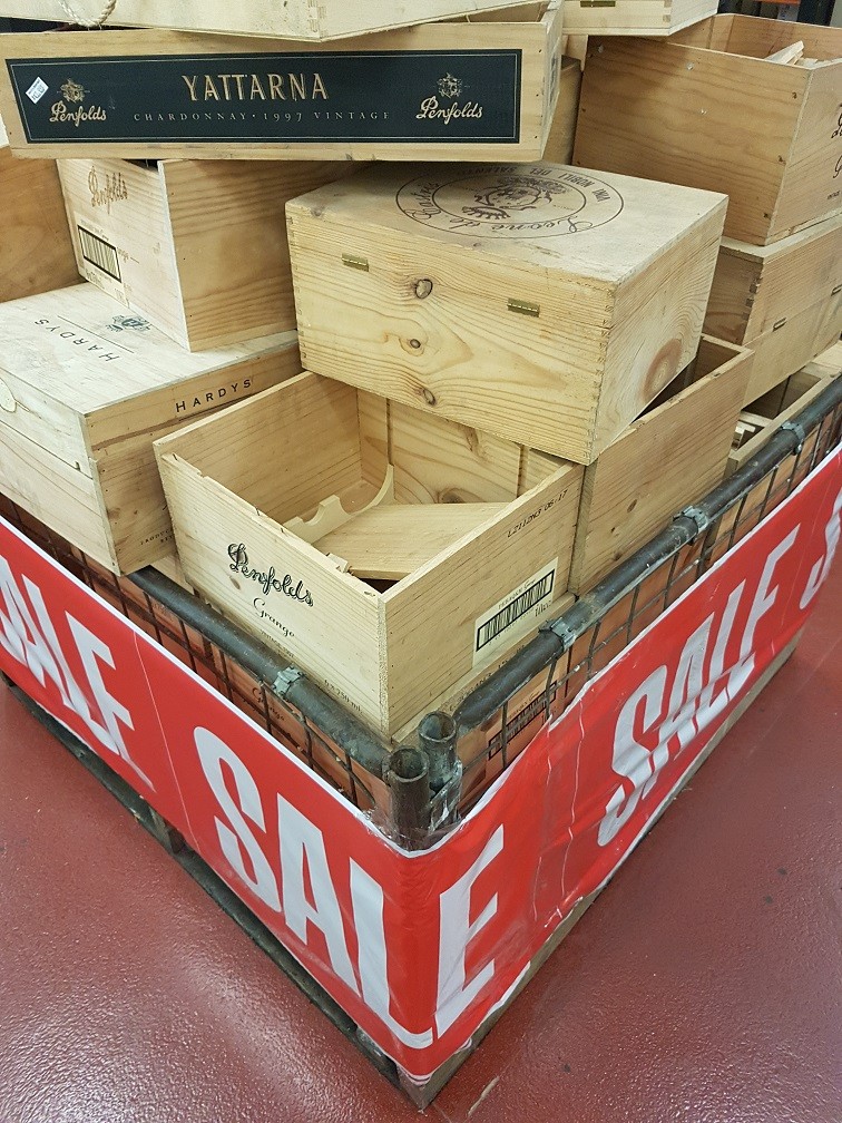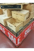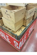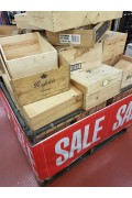 An assortment of original empty wooden boxes, some 6 pack and some are for dozens. Some with lids and some without.