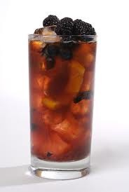 Combine ingredients in an ice filled cocktail shaker and shake for 20 to 30 seconds, or until well chilled. Double strain through a fine meshed strainer into a chilled Highball glass, filled with slices of blood orange. Garnish with black berries.