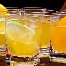 Keep the mixture warm over very low heat. It should no longer be simmering. Add the remaining ingredients. Stir and serve in small shot glasses or tumblers.