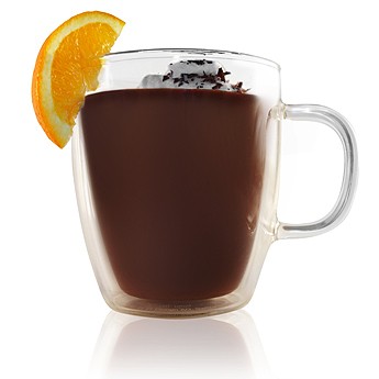 Add a splash of heavy whipped cream, chocoalte shavings and orange wedge.