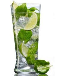 Top highball glass with ice and mix in some basil leaves well, pour liquids in and give a good serve with sugar.