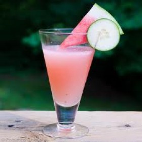 Garnish with a watermelon and cucumber slice and a sprig of mint.