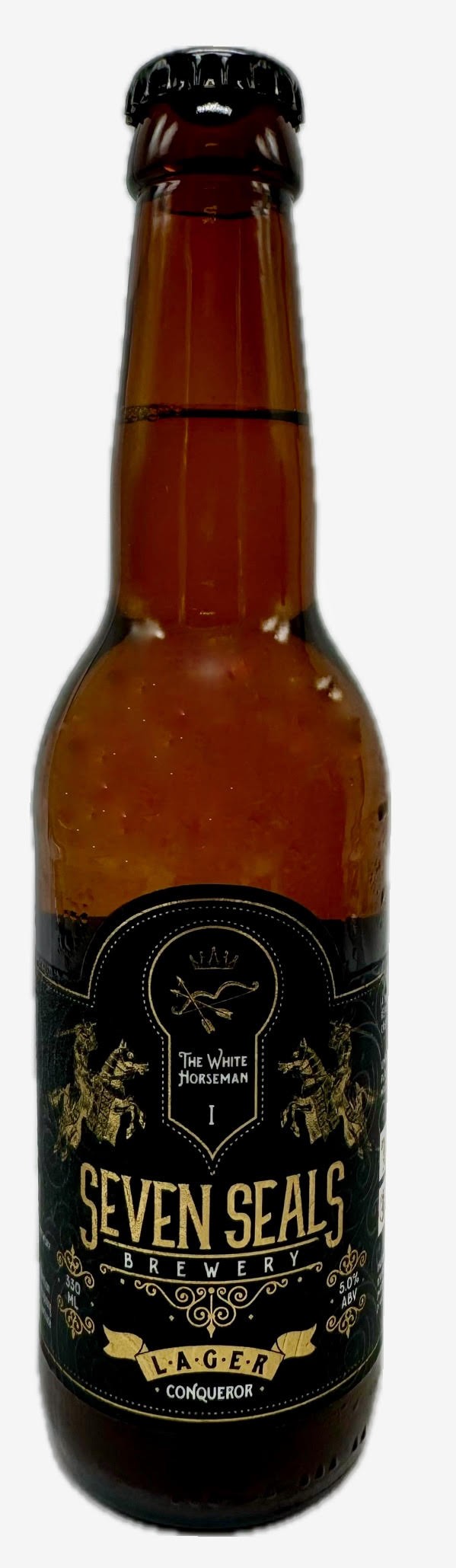 SEVEN SEALS is a boutique craft beer brand that captures the Seven Seals of the Apocalypse into seven craft beers. The First Seal, The White Horseman 'CONQUEROR' is a handcrafted traditional LAGER. Golden-coloured, refreshing, it boasts a subtle malt flavour with a crisp, bitter aftertaste.