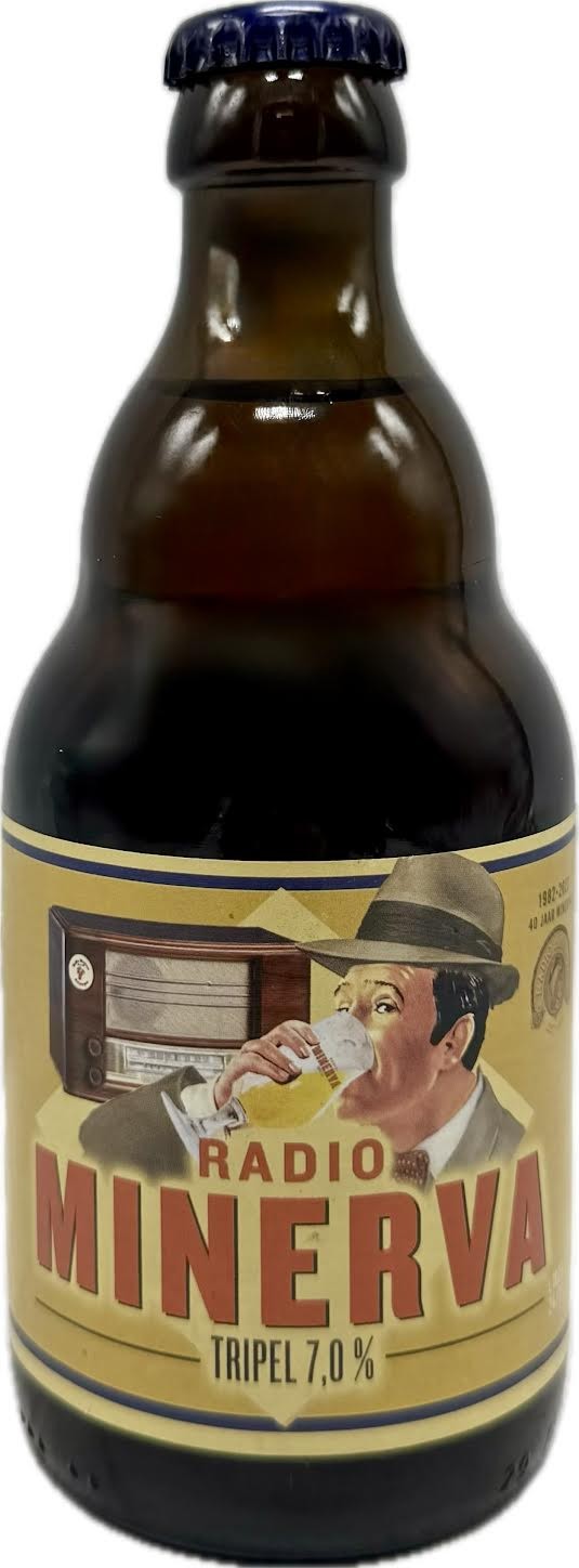 Radio Minerva Tripel is a classic Belgian-style tripel beer, brewed by Antwerpse Brouw Compagnie in collaboration with Radio Minerva to celebrate the radio station's 40th anniversary. It is a golden blonde beer with fruity yeast aromas and subtle hints of spice, balanced by a smooth malt backbone. The beer has a relatively low alcohol content for a tripel, with a full-bodied attack that transitions into a pleasant spiciness.