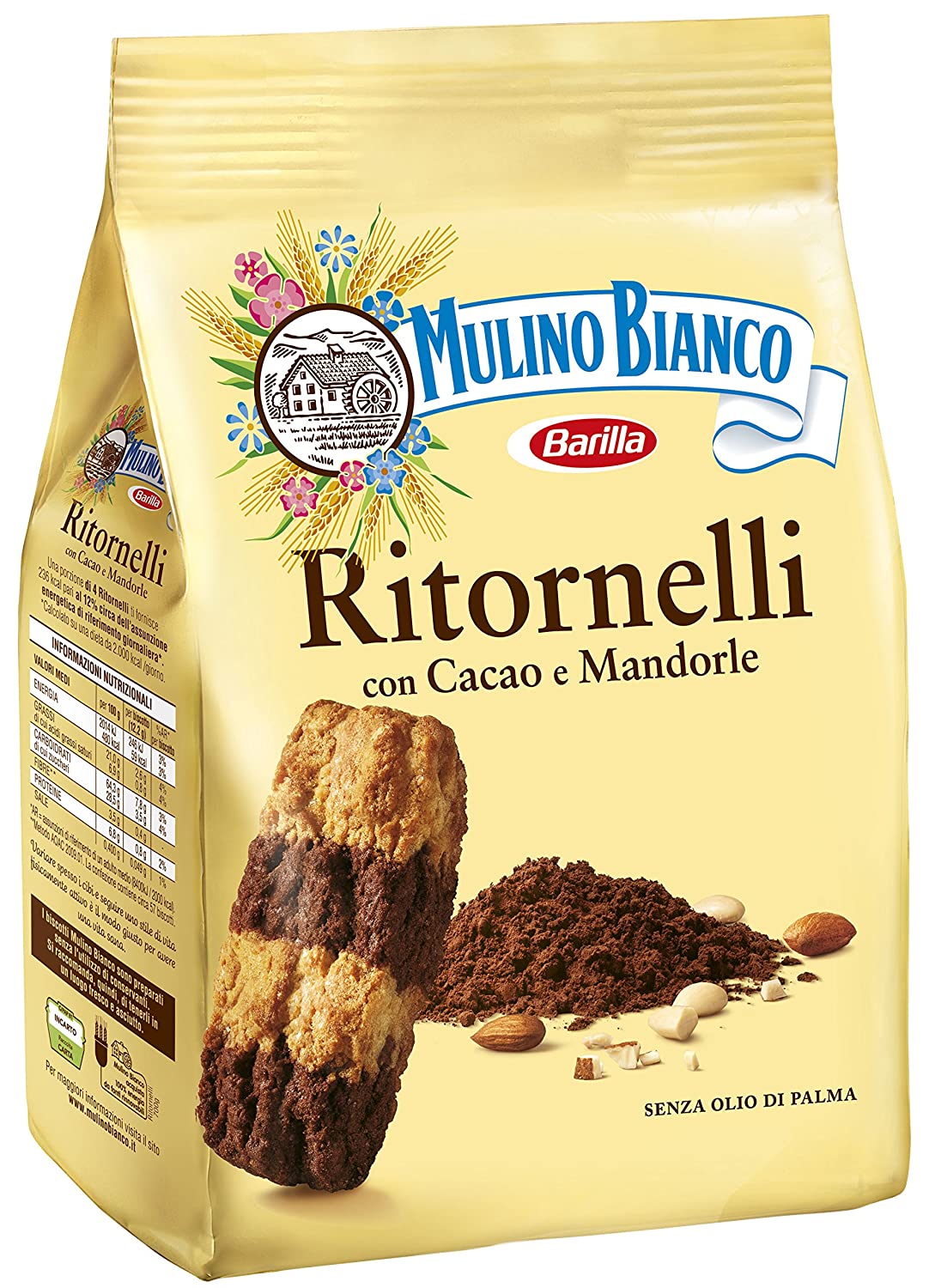 Mulino Bianco Ritornelli biscuits are made with cocoa and almonds flour according to an old recipe.