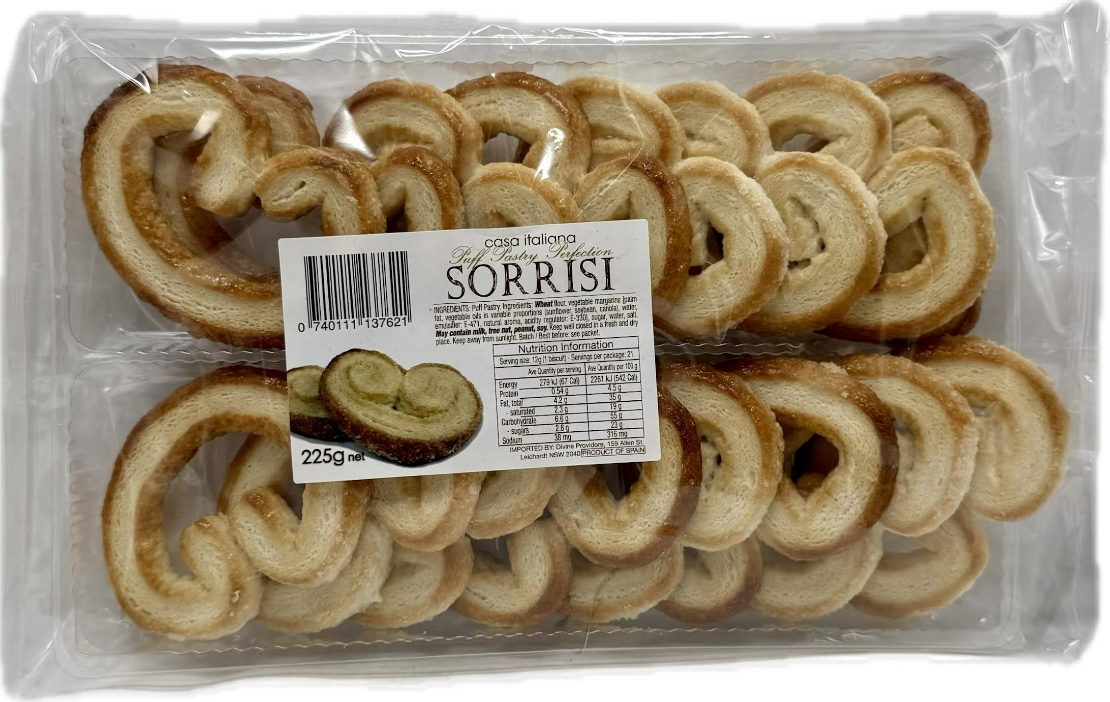 Indulge in the delightful taste of our Signature Sorrisi biscuits. These charming, smile-shaped treats combine a buttery base with a hint of vanilla, creating a perfect balance of flavor and texture. Enjoy them with your favorite beverage or as a sweet treat any time of day.