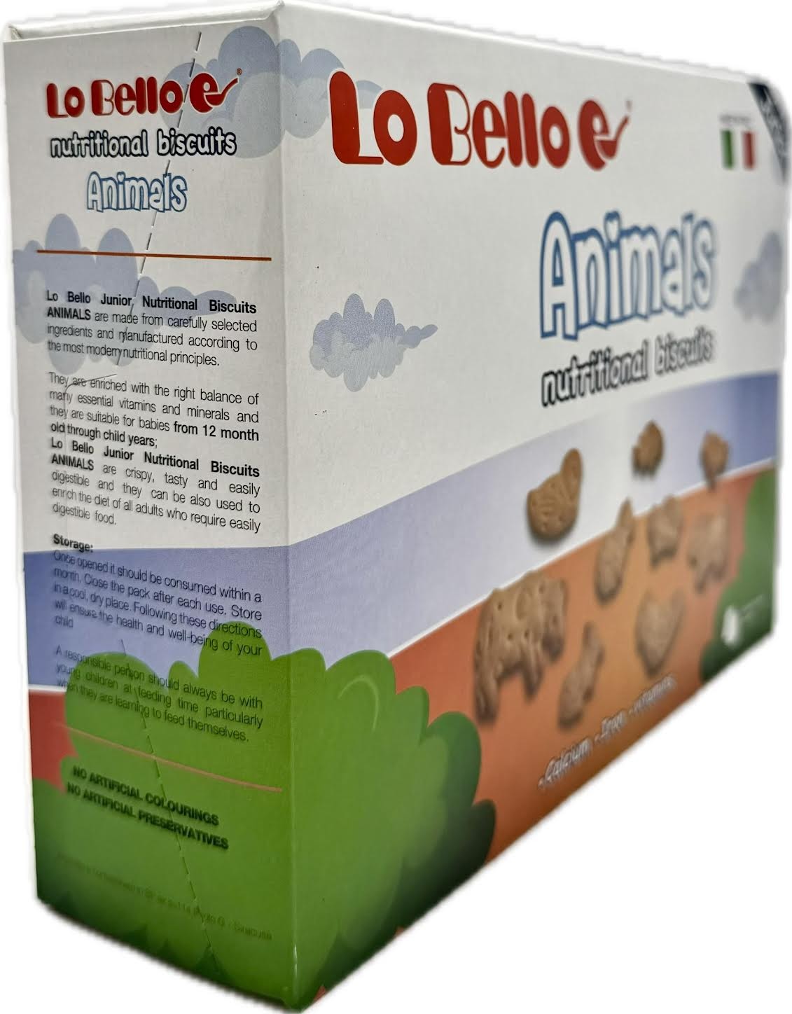 Junior milk biscuits Animals | FosfovitLo Bello Animals Biscuits (Animaletti) are nutritional, milky, animal-shaped biscuits designed for babies 12 months and older, though they are also suitable for adults needing digestible food, including pregnant women and the elderly. These biscuits provide a balanced intake of vitamins and minerals to support healthy growth and are formulated to be easily digestible. They can be offered as a solid snack or dissolved in milk or water to form a meal, making them a versatile and nutritious option.