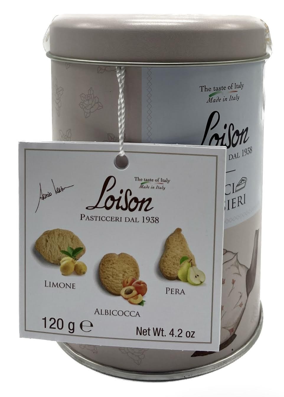 Lemon, Apricot, and Pear biscuits in tin are small and unique delicacies prepared with excellent ingredients such as fresh butter, Sicilian lemons, Williams pears, and natural Mananara vanilla from Madagascar, Slow Food praesidium.