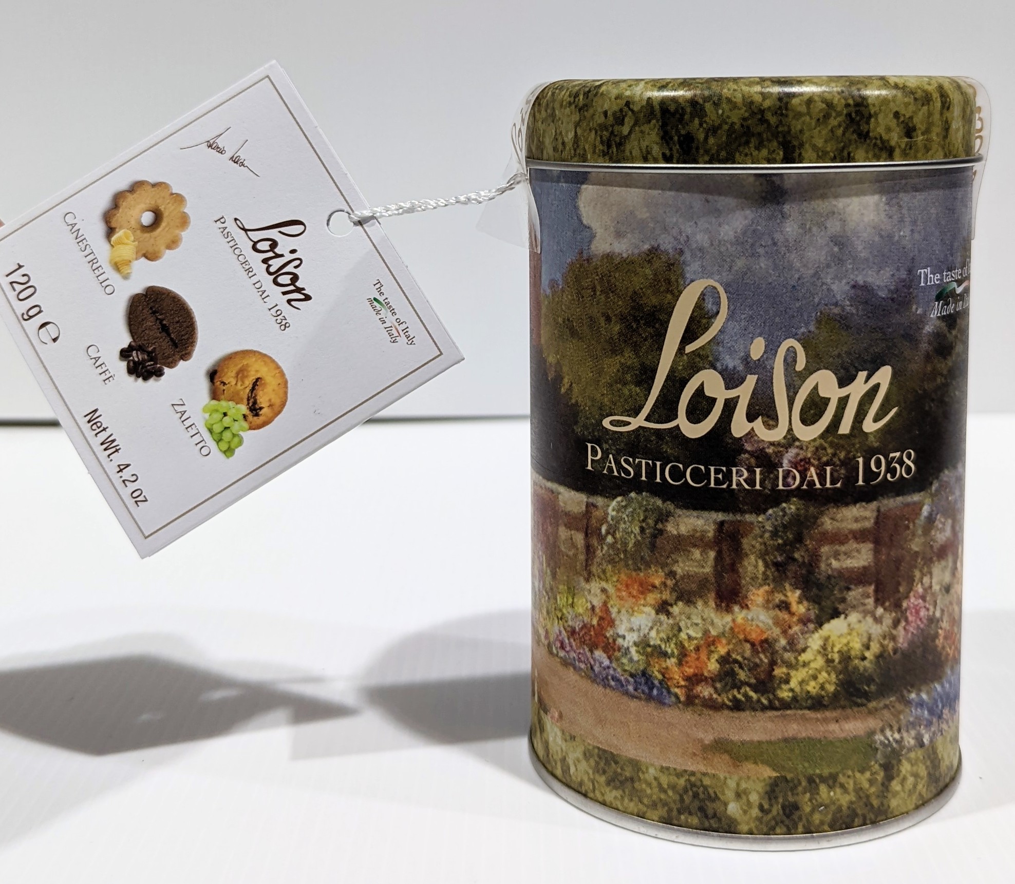 Loison biscuits 120g in a beautiful tin. Canestrello, Caffe and Zaletto biscuits.