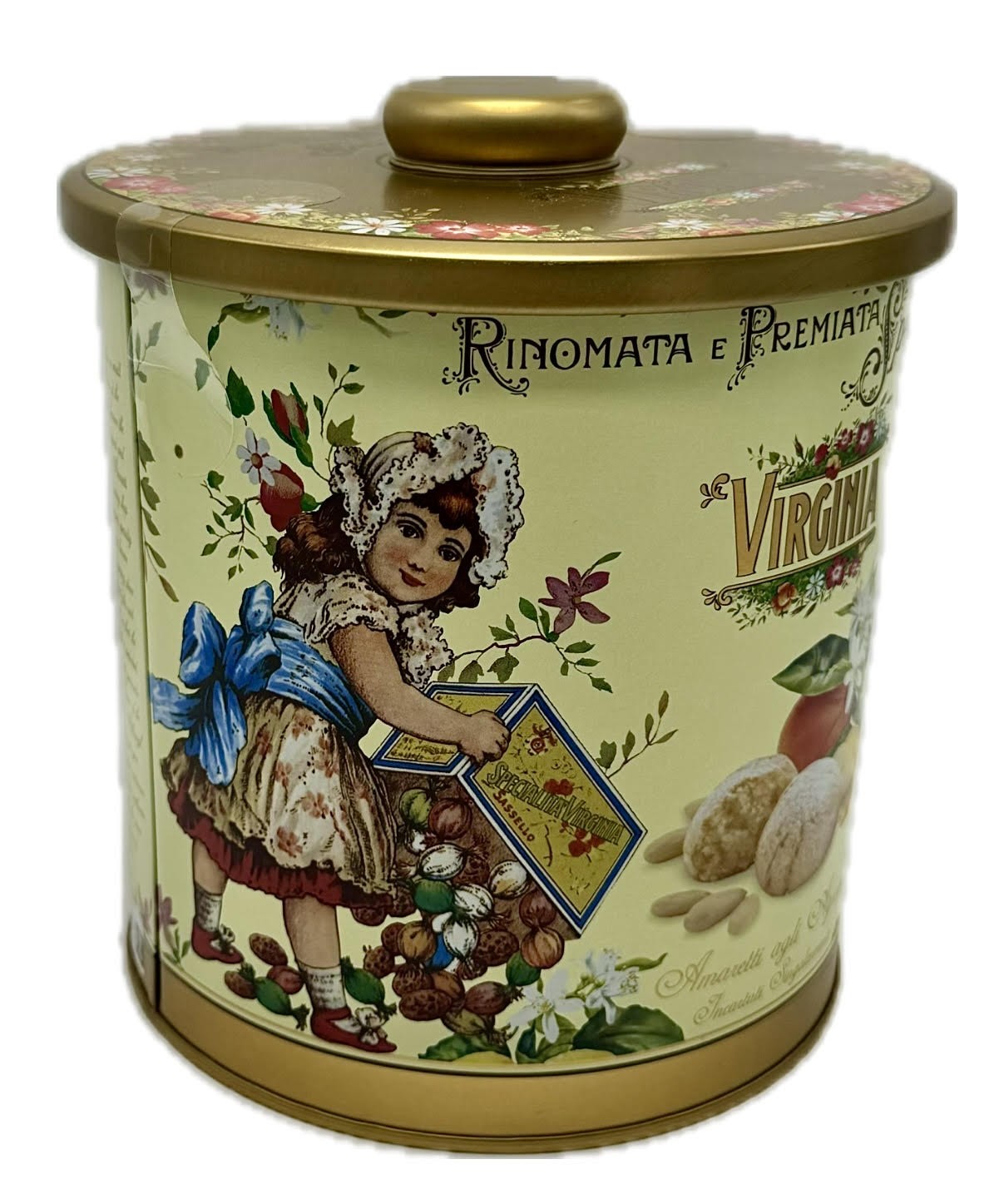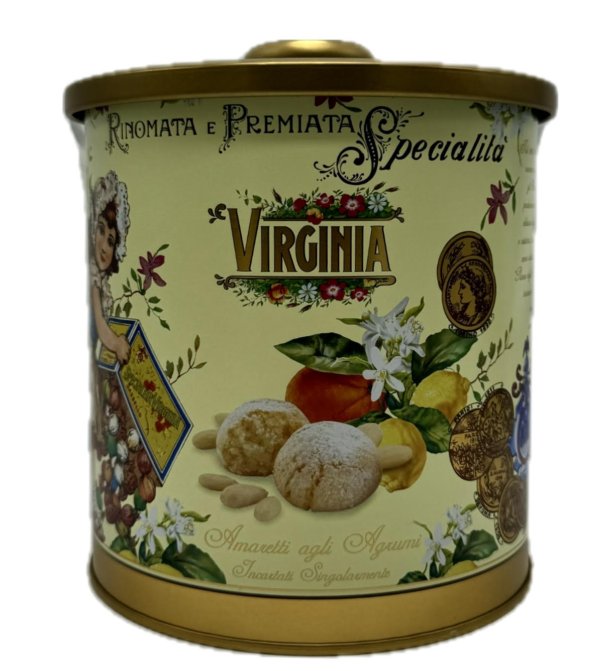 Virginia is a historical brand born in the 1860s, a synonym of quality and refinement in the art of making desserts and pastries. Virginia's Soft Assorted Citrus Amaretti Barrel Tin contains irresistible, soft, lemon and orange almond biscuits from Italy.