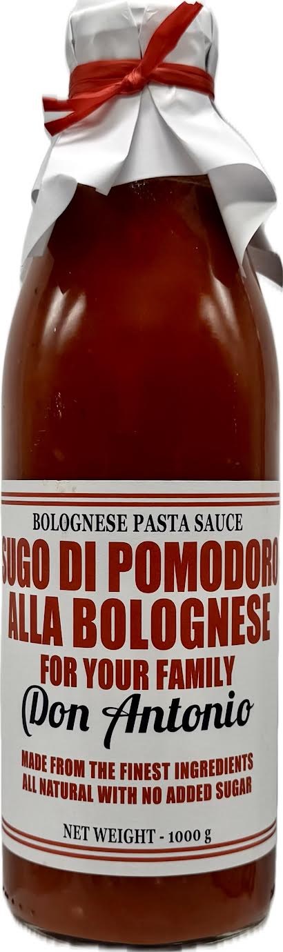Don Antonio Sugo Alla Bolognese is a rich, meaty tomato sauce based on the classic Italian recipe from Bologna, known as "ragù alla bolognese". It features a slow-cooked blend of tomatoes, beef, pork, and vegetables like celery, carrots, and onions, along with red wine and aromatic herbs. The sauce is known for its deep, savory flavor and is traditionally served with pasta, particularly tagliatelle, but can be enjoyed with other wide, flat pasta shapes.