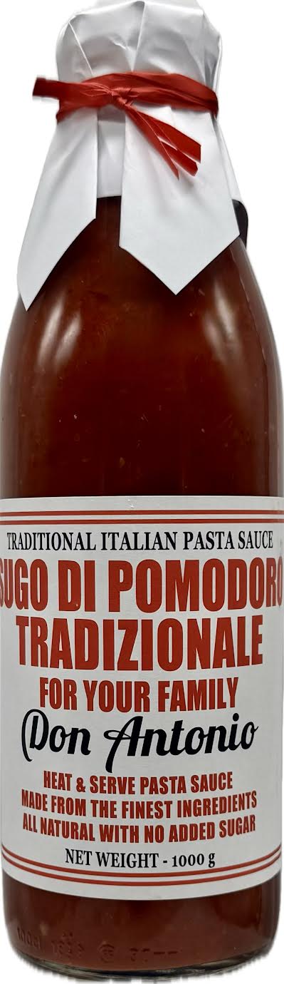 Don Antonio Sugo Tradizionale is a traditional Italian tomato sauce made with Italian tomato pulp, extra virgin olive oil, and a blend of aromatic vegetables and herbs like onions, garlic, celery, carrots, and oregano. It's a versatile sauce, ideal for pasta, bruschetta, pizza, or meat dishes. The sauce is crafted with all-natural ingredients and is ready to heat and serv