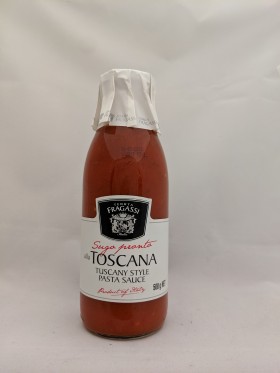 Ready to cook sauce flavoured Tuscan style; with red capsicum; from Italy, just heat and eat.
