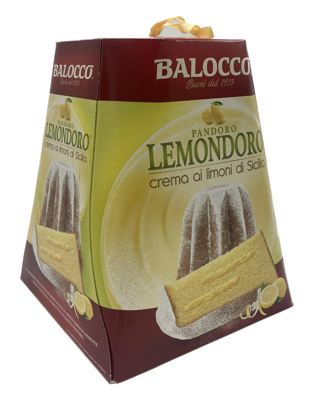 The fluffy and aromatic texture of the Balocco Pandoro, with a delicate lemon cream and a sprinkling of icing sugar. Our Pandoro with a lemon cream filling is a sweet, naturally leavened baked product, made using our traditional recipe and free from genetically modified ingredients.