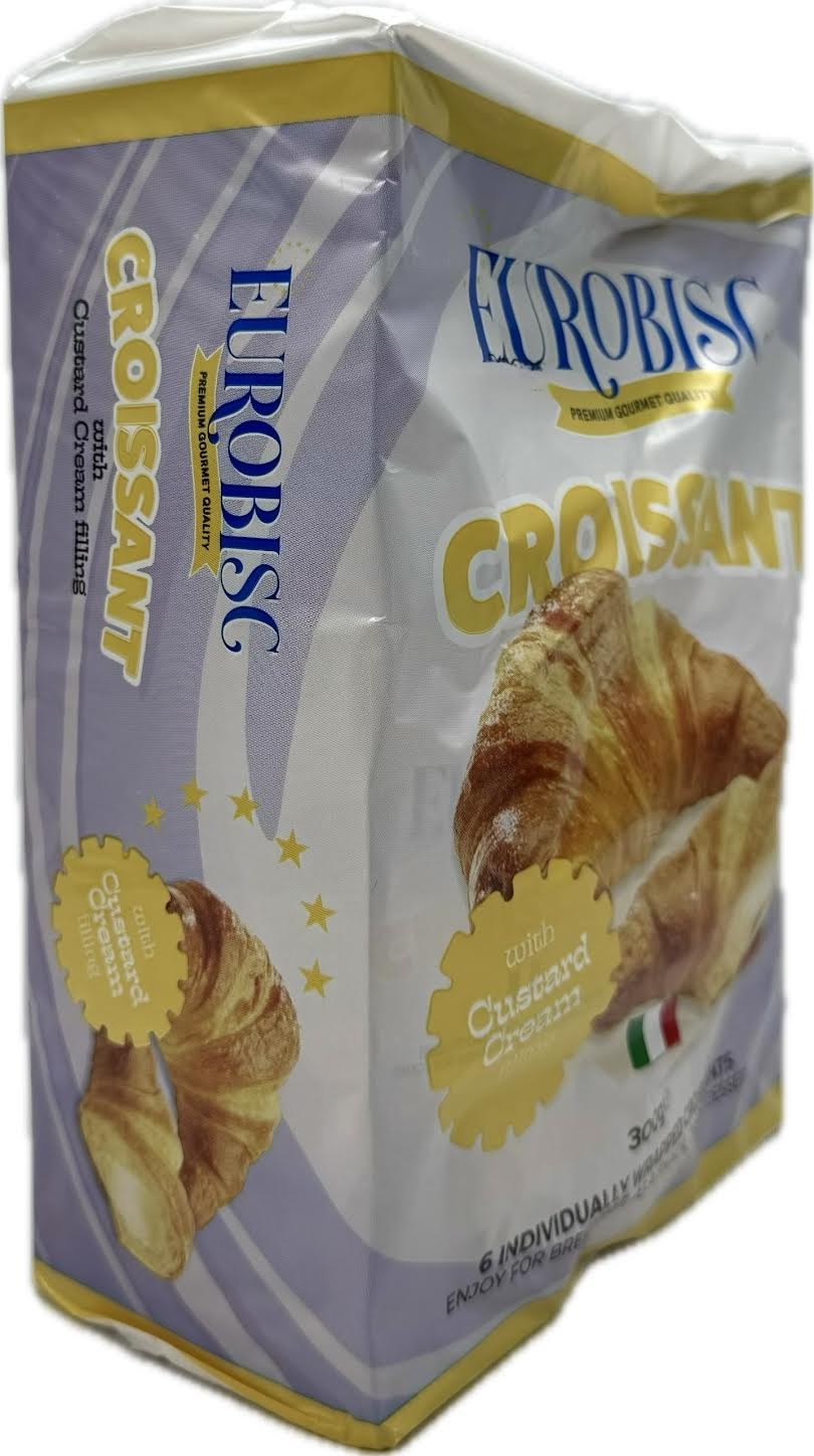 Eurobisc Croissant is a soft, flaky, and deliciously baked croissant filled with delicious custard cream perfect for snacking, school lunches, on-the-go snack, and a light evening dessert.