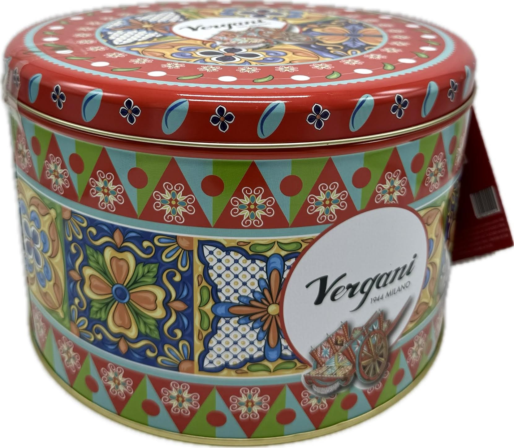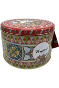 The Vergani Tin Classico Panettone is a traditional Italian Christmas cake from Milan, featuring a soft, airy crumb with a golden color and a rich aroma. It is studded with raisins and candied orange peel, made with premium ingredients like butter, eggs, and a natural sourdough starter, and presented in a gift-ready tin. This classic recipe is crafted over three days to achieve a balanced, sweet flavor and light texture.