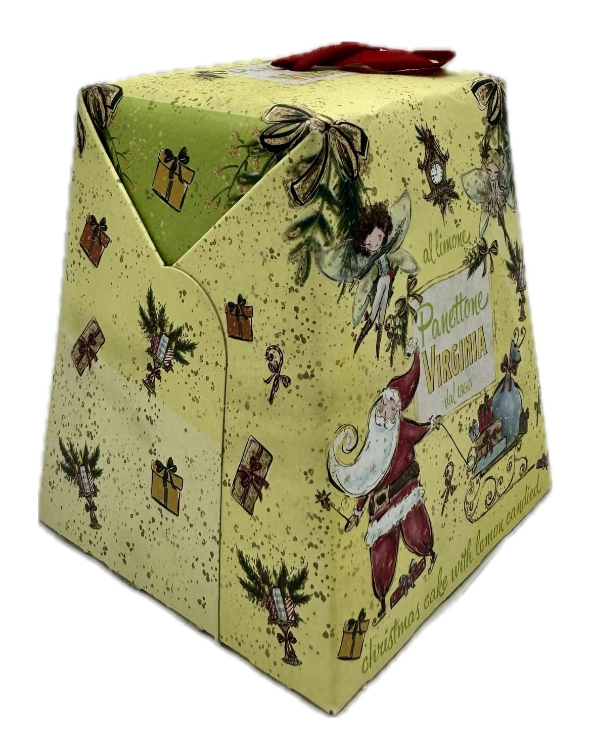 This pretty little hanging box, decorated with all the charm of Christmas, holds a baby Panettone. It’s made with candied lemon peel and so it’s delightfully fresh and zesty perfect with a glass of icy Limoncello this Christmas time.