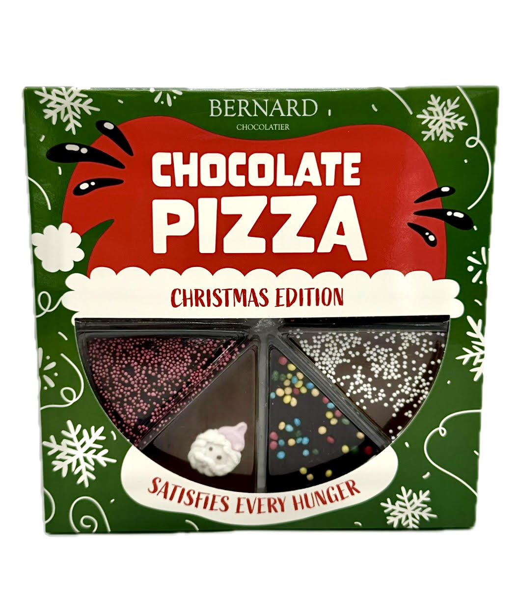 Bernard Chocolatier's chocolate pizza is a delightful indulgence that promises to quell any cravings. Perfect for pizza aficionados (and isn't that everyone?), each package contains 10 'slices' of sumptuous Belgian milk and dark chocolate, extravagantly decorated with festive feels. The Christmas edition chocolate pizza comes ready to be placed under the tree