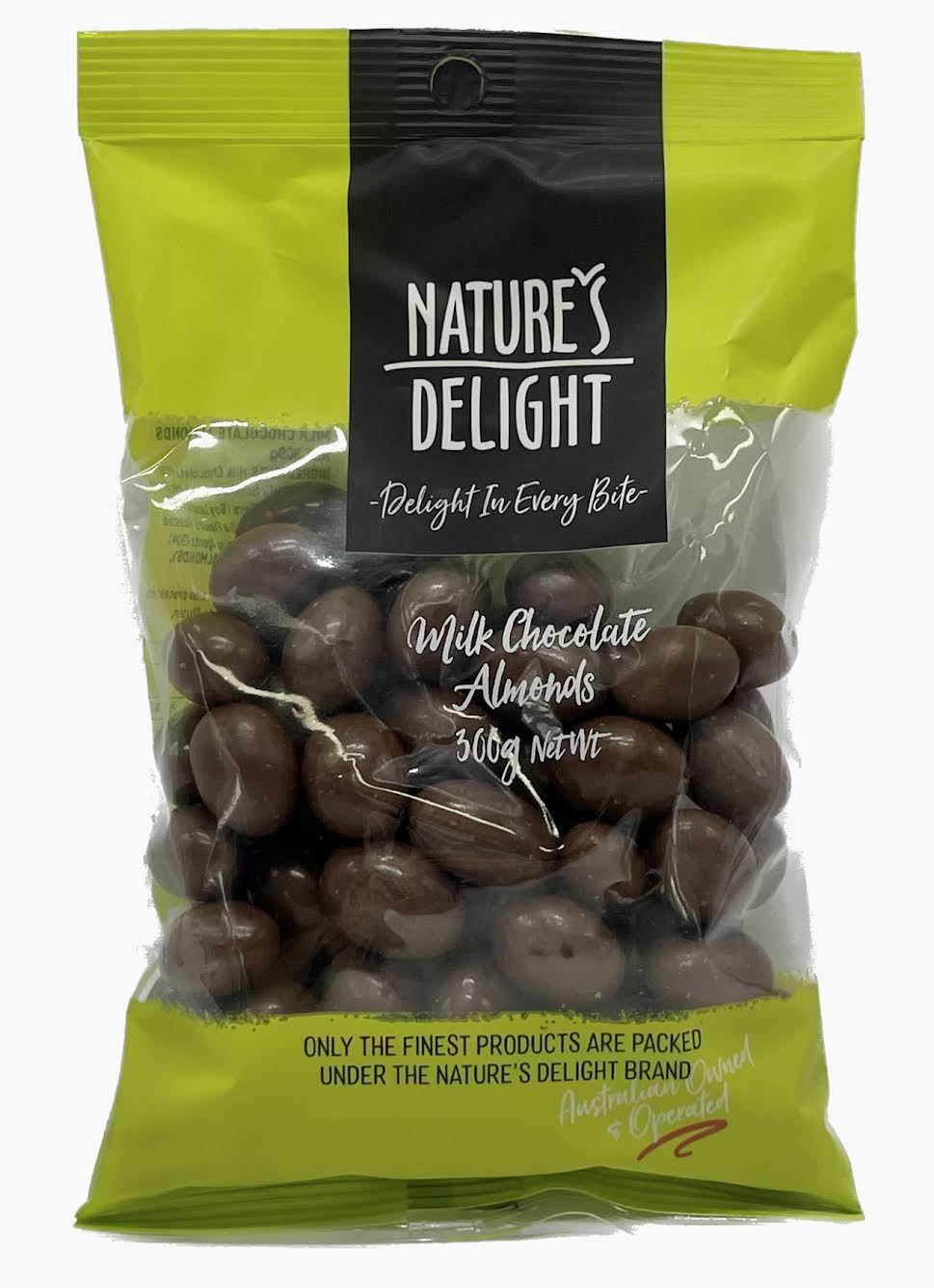 Natures Delight Almonds Milk Chocolate with chopped roasted almonds for a full nutty flavour. Crunchy almonds is roasted with their skins on which gives a deeper almond flavour. Great to eat whilst watching TV or at the cinema. Ideal snack for when you are hungry.