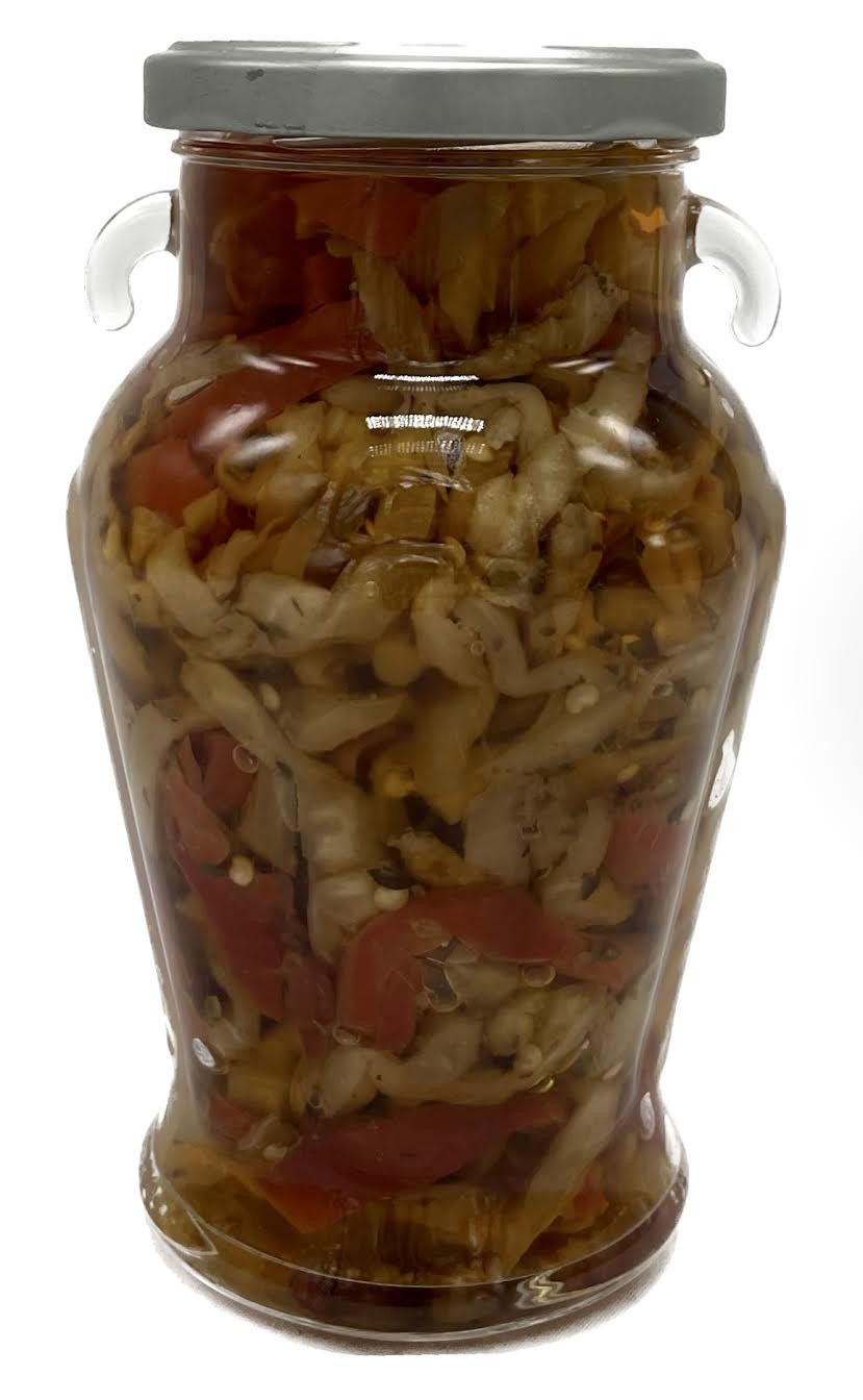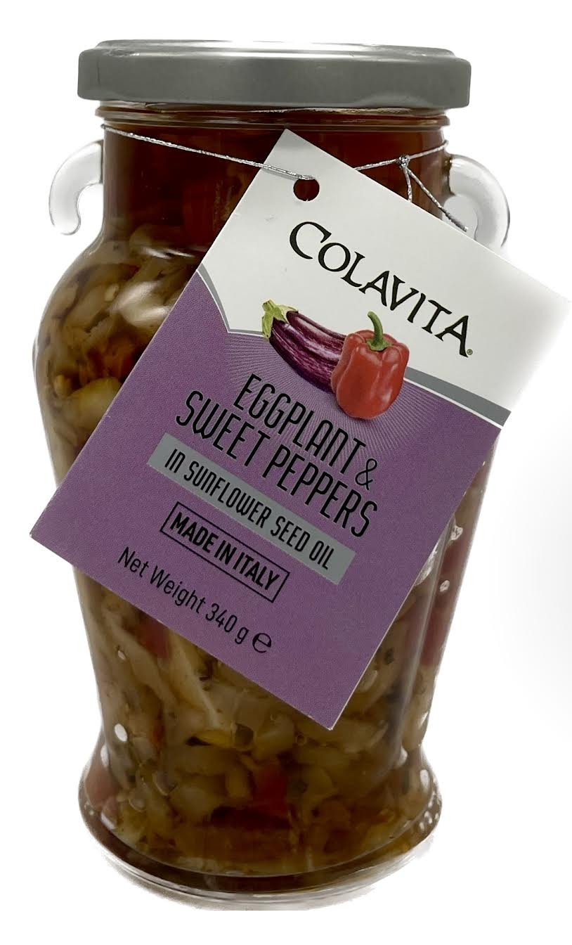 Colavita eggplant and sweet peppers is from Colavitas premium line of Antipasti Marinated Vegetables in Sunflower Seed Oil.