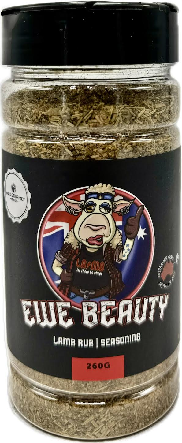 The Gold Gourmet Foods Ewe Beauty Premium Rub will have you rocking. Experience the rich and bold flavor of premium gourmet lamb with our specially crafted Lamb Rub. Made with high-quality ingredients, this rub adds a delicious blend of spices to enhance the natural taste of lamb. Perfect for grilling, roasting, or slow cooking, this premium rub is sure to elevate your lamb dishes to the next level. Get your hands on this gourmet Lamb Rub today and taste the difference for yourself!