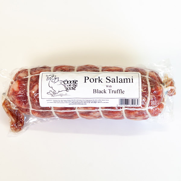'Salame al Tartufo’ is a treat for special occasions, made using the finest free-range Australian Pork and imported Italian Black Summer Truffles. The King of Traditional Salami it is best served with a sharp Pecorino and accompanied by crisp dry white wine or European style lager.