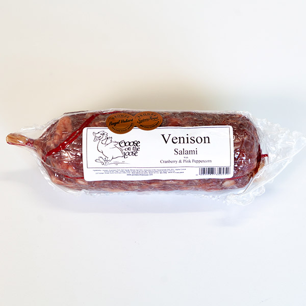 Free range Fallow Venison traditionally dry cured with pork fat. The Cranberry and Pink Peppercorn give this soft flavoured Salami a lingering sour and peppery after taste. It’s ideally served with a mild flavoured cheese, dried fruit, nuts and accompanied by a light bodied beer or ‘Hunter Valley’ style wine.