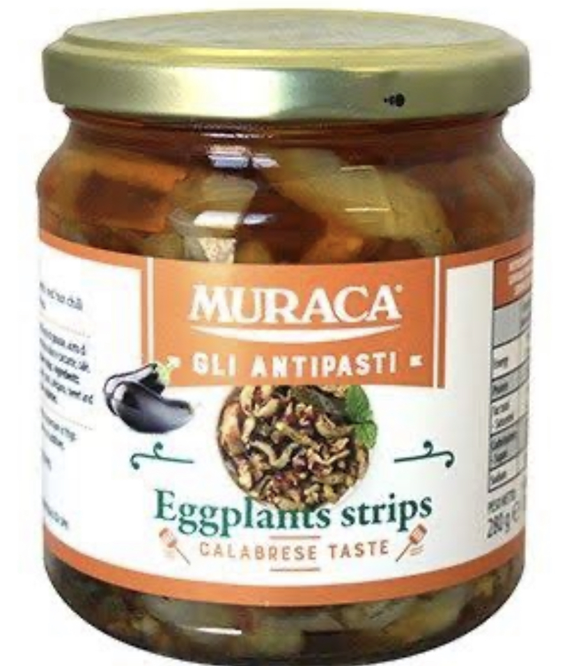 Stripped eggplants spiced with red hot chilli pepers. Ideal for apetizers and entrees.