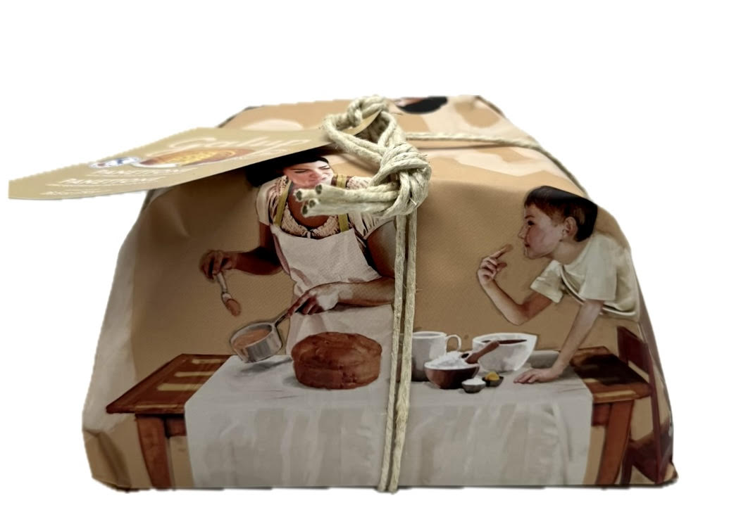 Galup celebrates the chocolate recipe by mixing in the flully dough, without sultanas and candied fruits, the intense flavour of dark chocolate, the pleasant sweetness of the milk chocolate and the enveloping smoothness of the white chocolate.