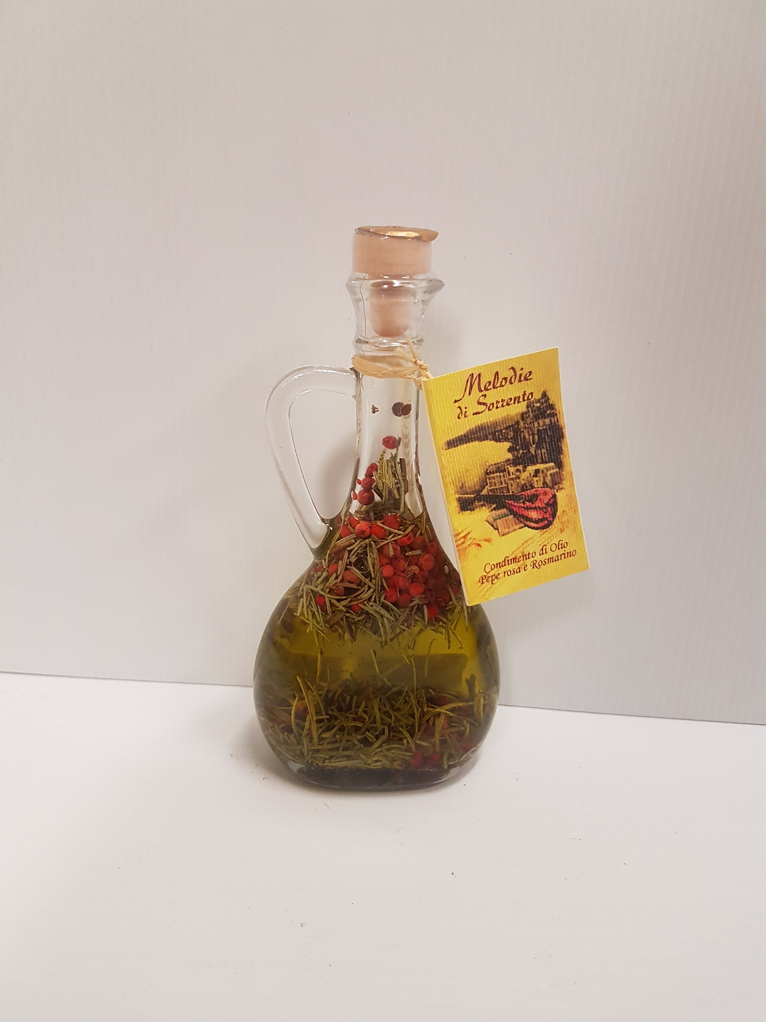 The oil with rosemary and pink pepper is ideal to enhance the aroma and flavour of meat, potatoes, soups, vegetables and cereals, giving the food a strong flavor