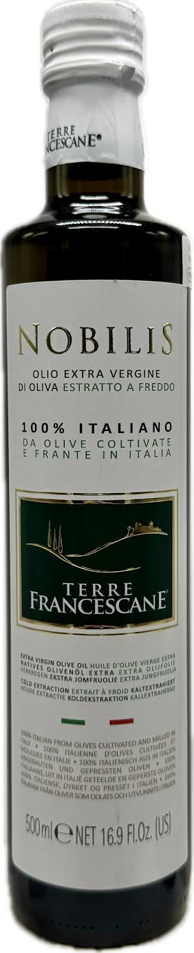 The 100% Italian Nobilis extra virgin olive oil is cold extracted in Italy from olives cultivated and harvested in Italy. Particularly suited for everyday use. Thanks to its balanced taste it pairs well with any food as well as for cooking.