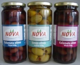 La Nova Kalamata Pitted Olives are almond-shaped, purple-black olives known for their rich, fruity, and slightly salty flavor. These olives are sourced from Kalamata, Greece, a region renowned for its olive production. They are typically cured in brine or a vinegar solution, which contributes to their distinct taste and texture. Pitted olives offer convenience for cooking, as they are ready to use in various dishes like salads, sauces, and dips.