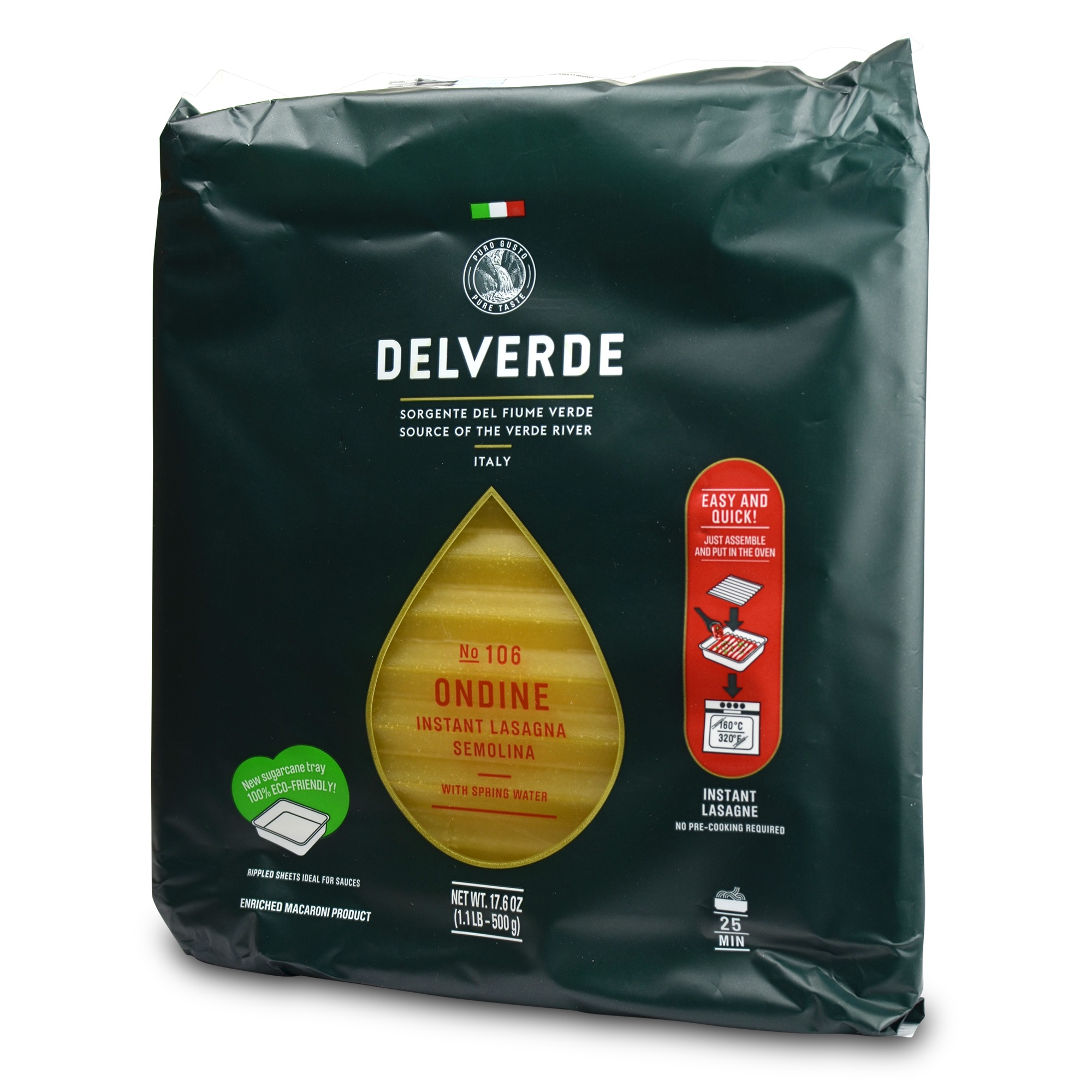Rippled sheets made with durum semolina wheat and pure spring water, slow drying. No pre-cooking required.