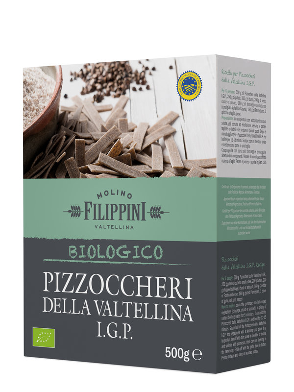 Traditional pasta with buckwheat flour and durum wheat flour. This pasta is typically cooked with greens, and cubed potatoes.