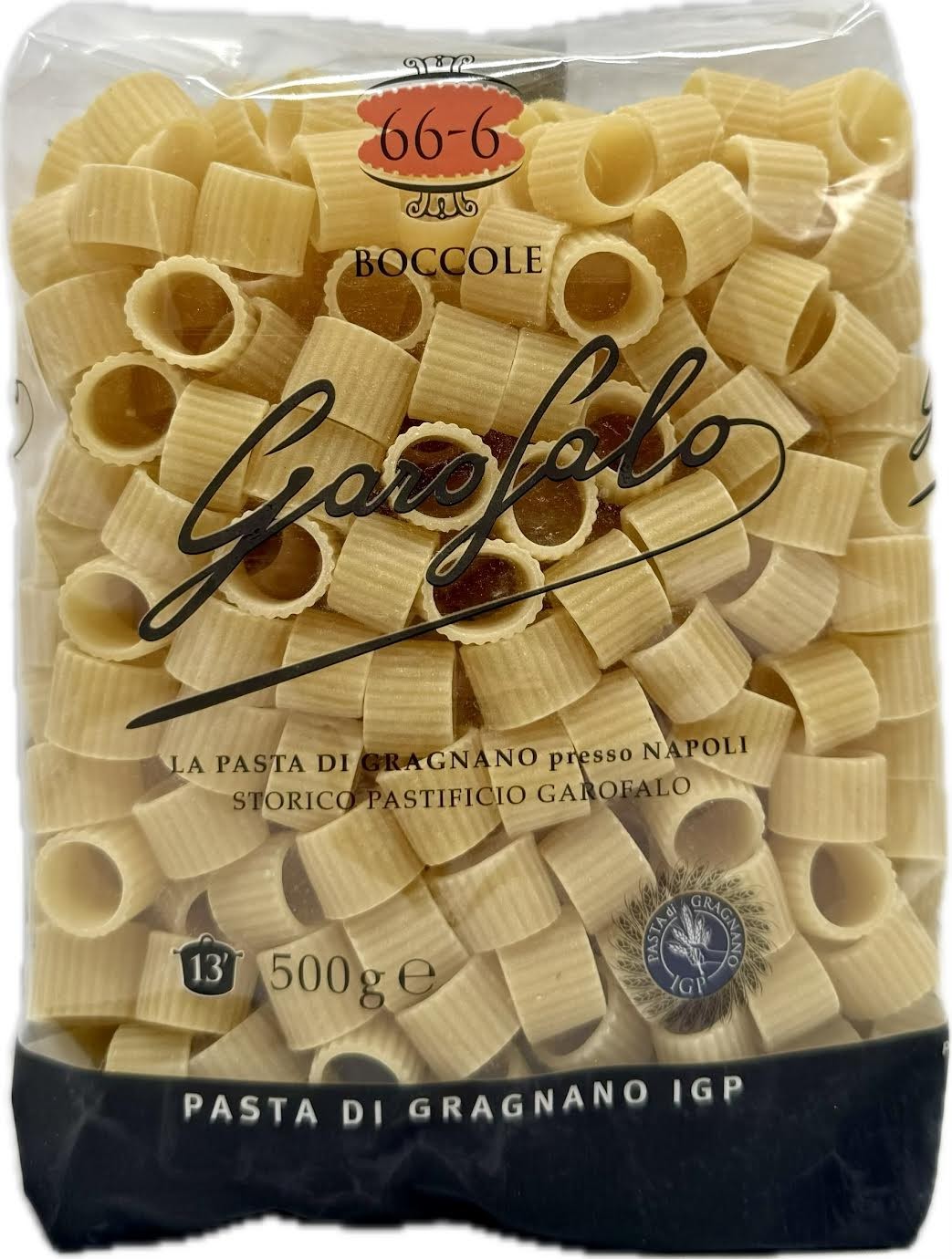 Garofalo Boccole are large pasta rings with external ridges: the result of careful research that respects tradition, origins and raw ingredients. The dough is bronze drawn to give it a unique roughness and texture on the palate.