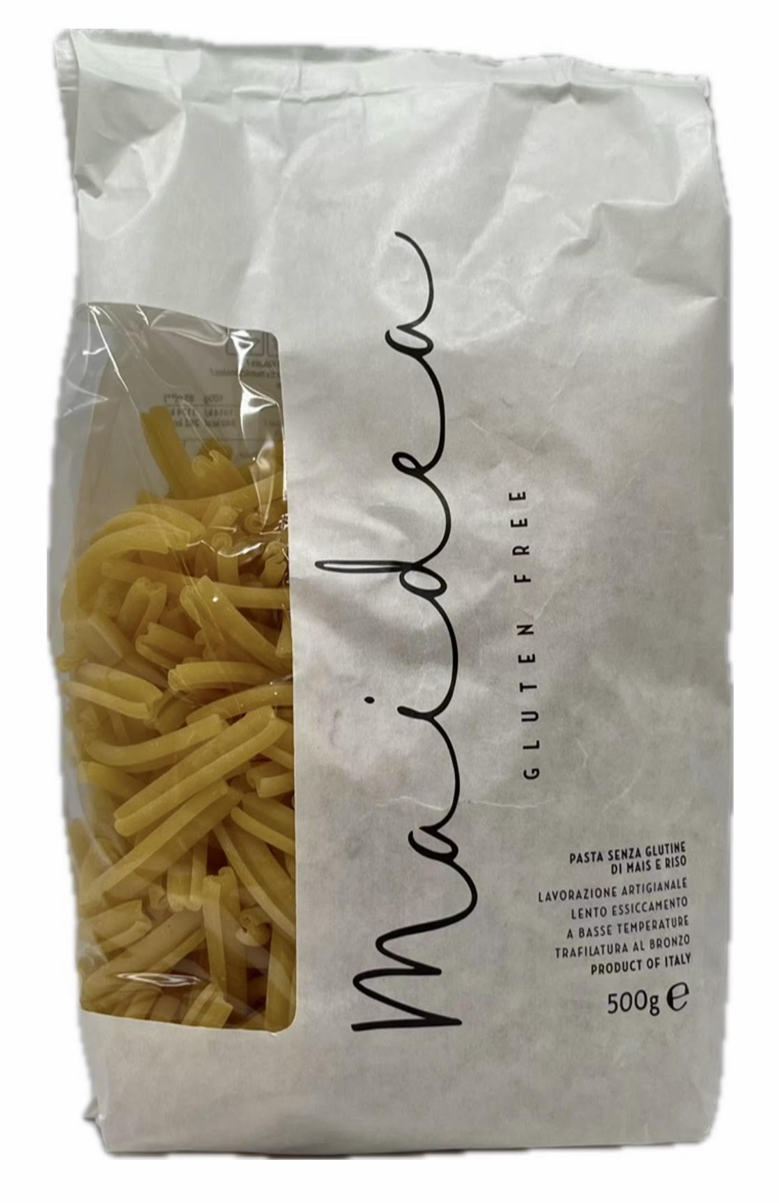 Gluten free pasta made in Italy with only italian flours without additives and emulsifiers. Bronze drawing and dried slowly at lowtemperature, soy free. Produced in our factory 100% dedicated to gluten free