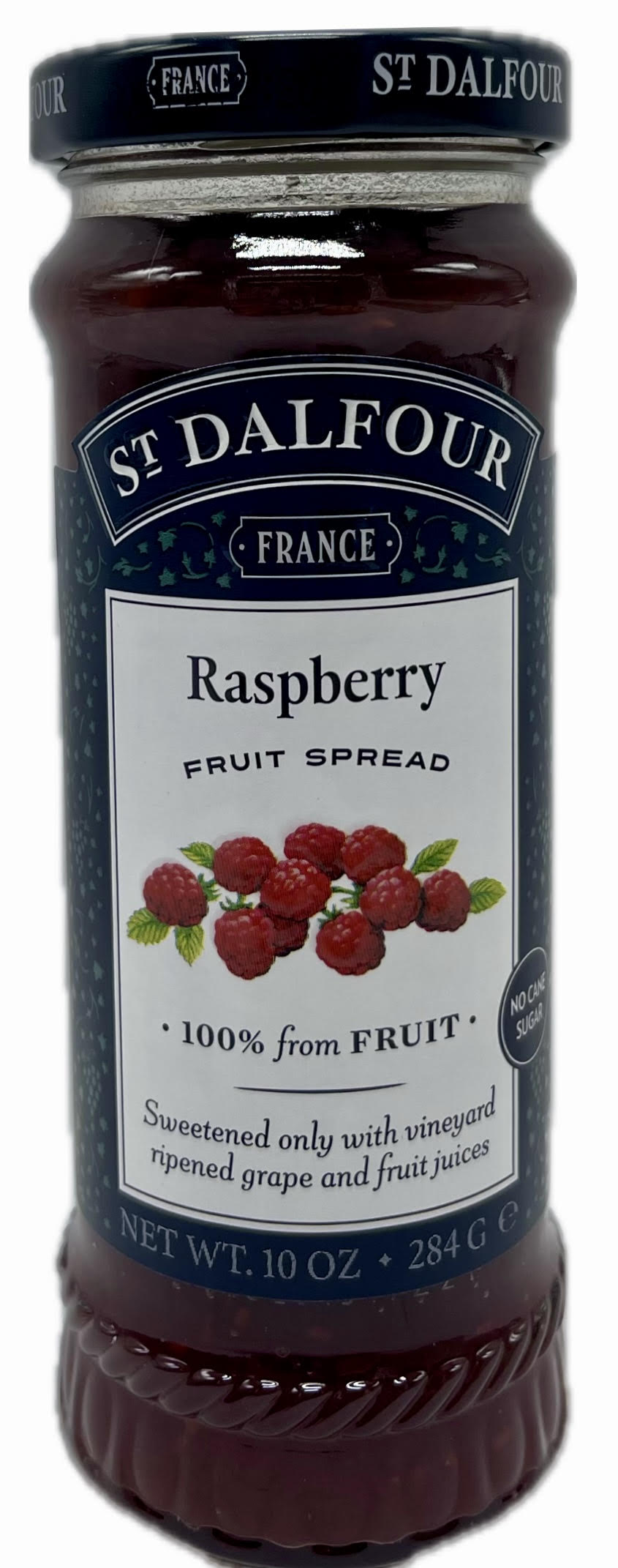 St Dalfour Raspberry Fruit Spread. Hand crafted in France from a traditional family recipe. Classic raspberry flavour with a noticeable tartness and sweet finish. Pairs well with French toast, ricotta and angel food cake.