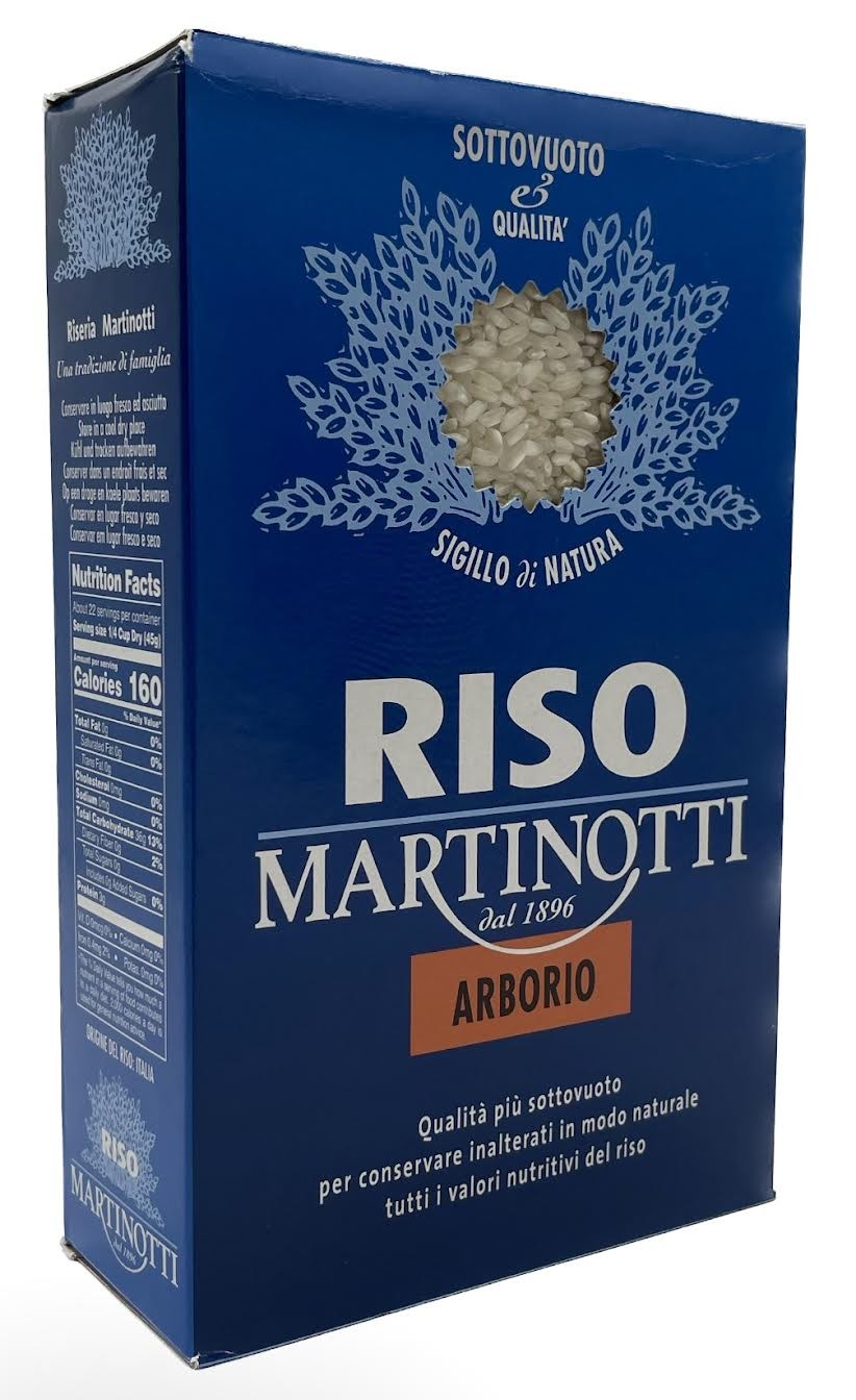 Arborio rice is small and round in shape, it's high levels of starch make it ideal for cooking creamy risottos.
