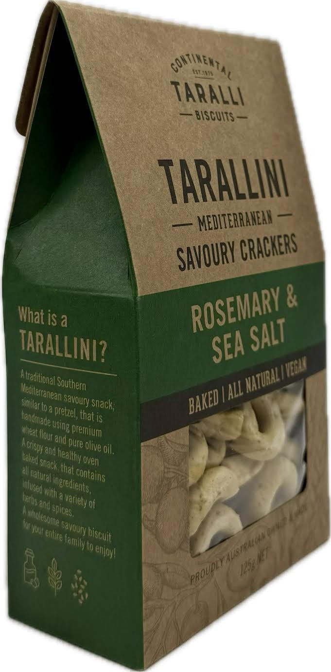 Vegan Snacks Rosemary & Sea Salt. Enjoy our savory Rosemary Sea Salt vegan snacks from Continental Taralli Biscuits. Made with authentic Italian flavors, these tarallini are a delicious treat.