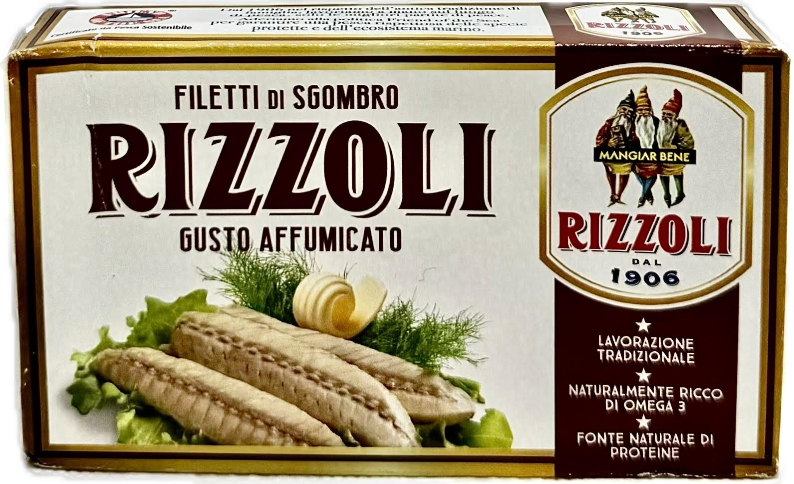 Rizzoli Smoked Mackerel Fillets In Sunflower Oil are premium, hand-selected fillets from larger, more flavorful mackerel, known for their intense, smoky taste and juicy texture, high protein, and Omega-3 content. Processed by hand using traditional methods at the fishing site, these boneless fillets are suitable for eating straight from the can, in salads, or as an ingredient in various dishes.