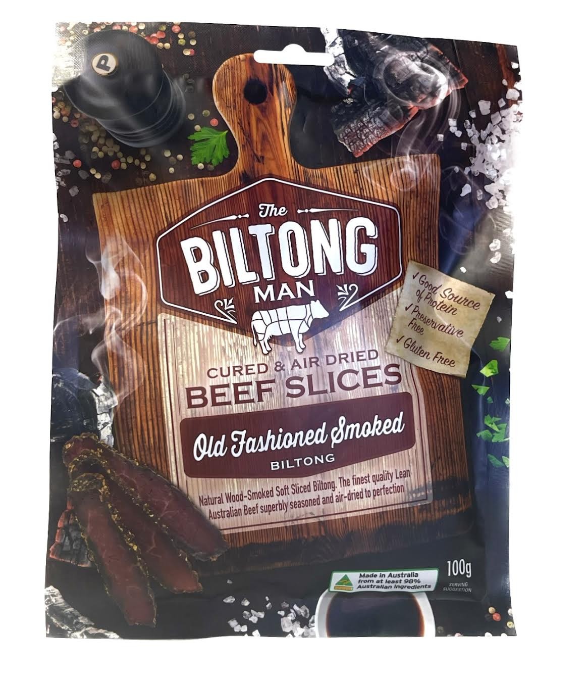 Natural smoked soft sliced biltong, superbly seasoned and air-dried to perfection! The Biltong Man uses only the finest quality lean Australian Beef to manufacture this delicious, low-fat, high protein snack. This original snack is the perfect companion to any meal or drink – anytime, anywhere!