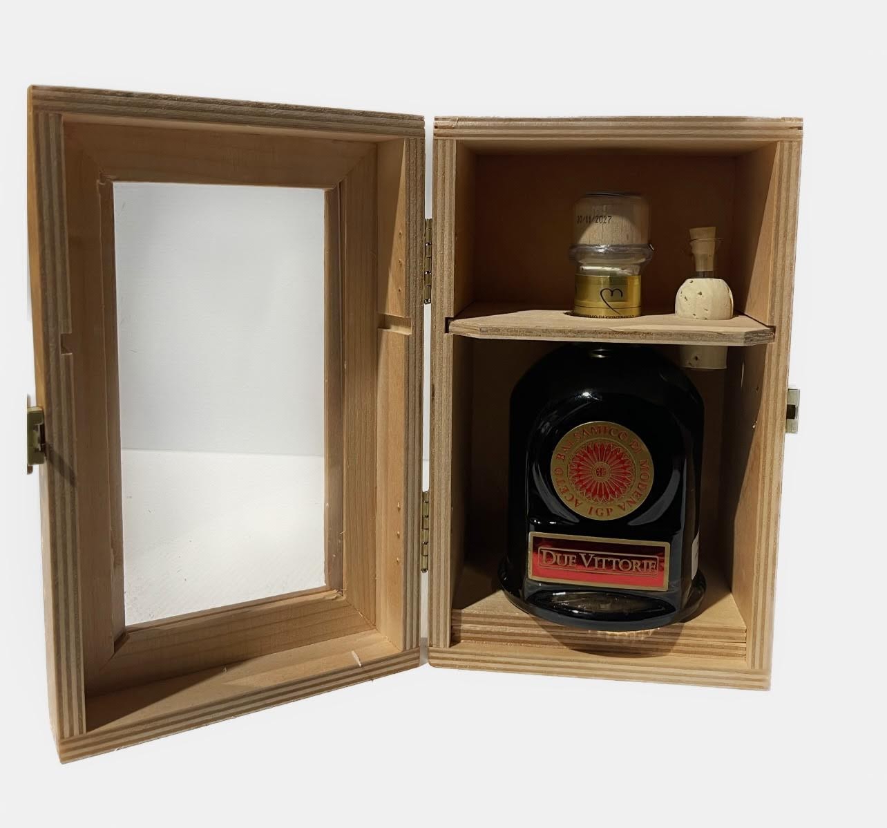 Due Vittorie balsamic vinegar is dense, full-bodied and slow aged in durmast oak barrells. Sweet, acidic, thick, with an after-taste of black cherry. Product of Modena, Italy.
