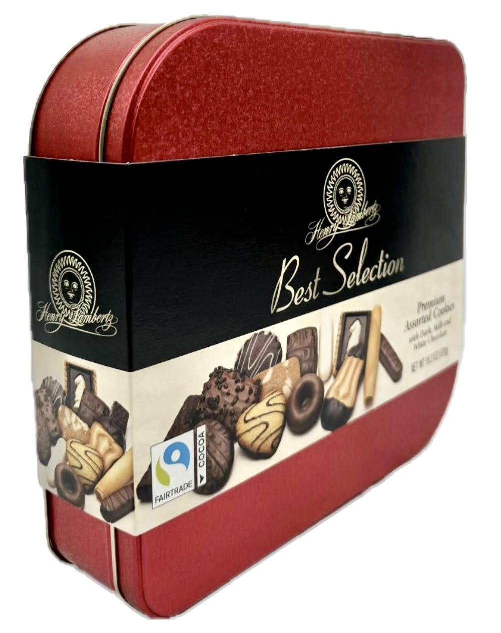 This assortment of cookies is sure to delight any chocolate-dipped cookie lovers. A taste of both milk and dark chocolate, a German specialty.Give it as a gift or keep it all to yourself.