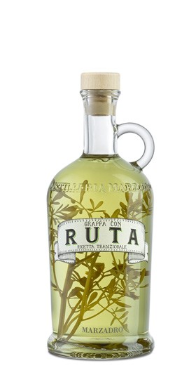 Obtained by infusing rue leaves in Grappa from selected blends of marc from Trentino, which are distilled separately in Bagnomaria pot stills and subsequently mixed. Rue is a wild plant from the Rutaceae family that is harvested directly by our distillery in the summer months, before flowering. The rue gives the Grappa a slightly bitter balsamic taste.