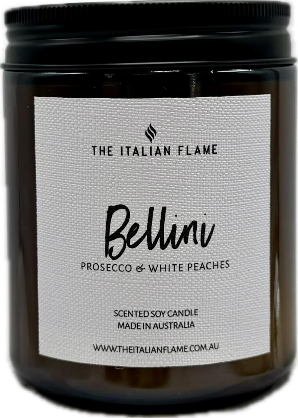 A Bellini is a cocktail made with prosecco and fresh white peach puree which originated in Venice, Italy. This festive scented candle of sparking prosecco and sweet peaches says "Salute!" to celebrate special moments. The aroma is joyful and lifts spirits to transform any gathering.