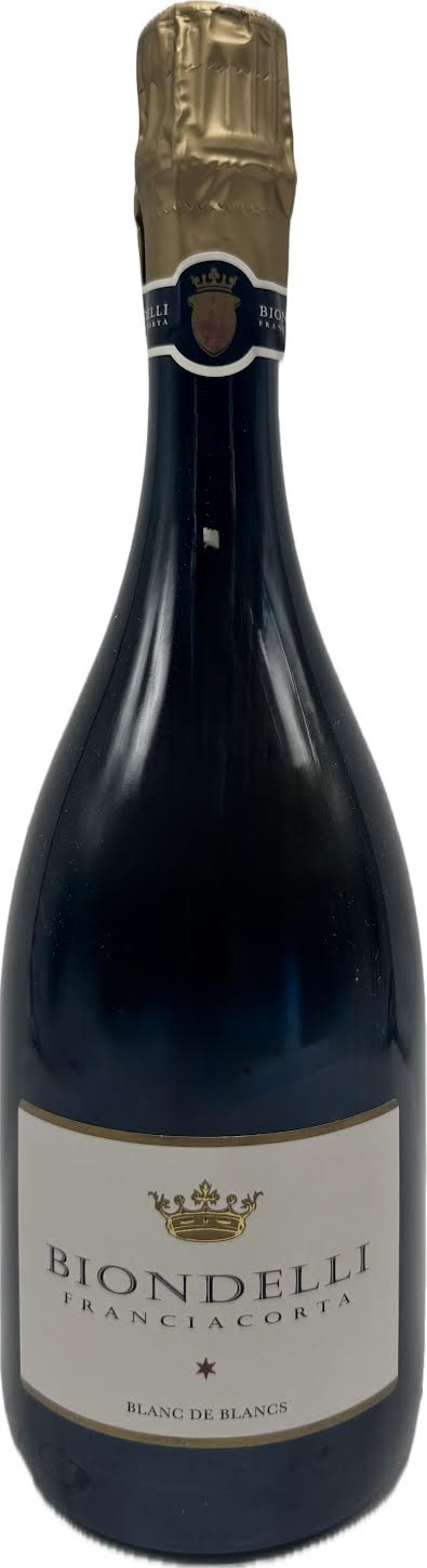 Biondelli Franciacorta Brut NV is a crisp, complex Italian sparkling wine from Lombardy, known for its fine mousse, toasty notes of brioche/nuts, and fresh citrus/yellow fruit flavors, offering a balance of minerality, creamy texture, and vibrant acidity, often compared to Champagne but with distinct Italian character. It's made primarily from Chardonnay, showing floral hints, peach, almond, and citrus with a refreshing, mineral-driven finish.