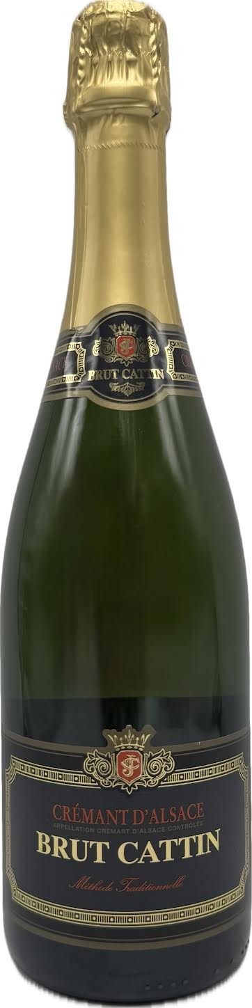 Crémant Brut Cattin shows a pale gold color with fine bubbles and fresh aromas of green apple and white flowers. The palate is crisp and dry, with lively acidity, subtle lemon notes, and creamy bubbles. It’s ideal as an aperitif and pairs well with shellfish, fish, white meats, and even apple pie.