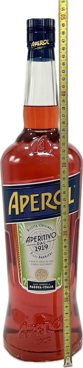 A 3L bottle of Aperol is a large format of the Italian bitter apéritif with a bright orange color and a bittersweet taste from a secret recipe that includes gentian, rhubarb, cinchona, and a blend of herbs and roots. It is a lower-alcohol liqueur (11% ABV) often used to make the popular Aperol Spritz cocktail, which is known for being refreshing and not overly sweet. The name "Aperol" is derived from "apéro," a French slang word for apéritif, meaning "to open" or "to stimulate the appetite".